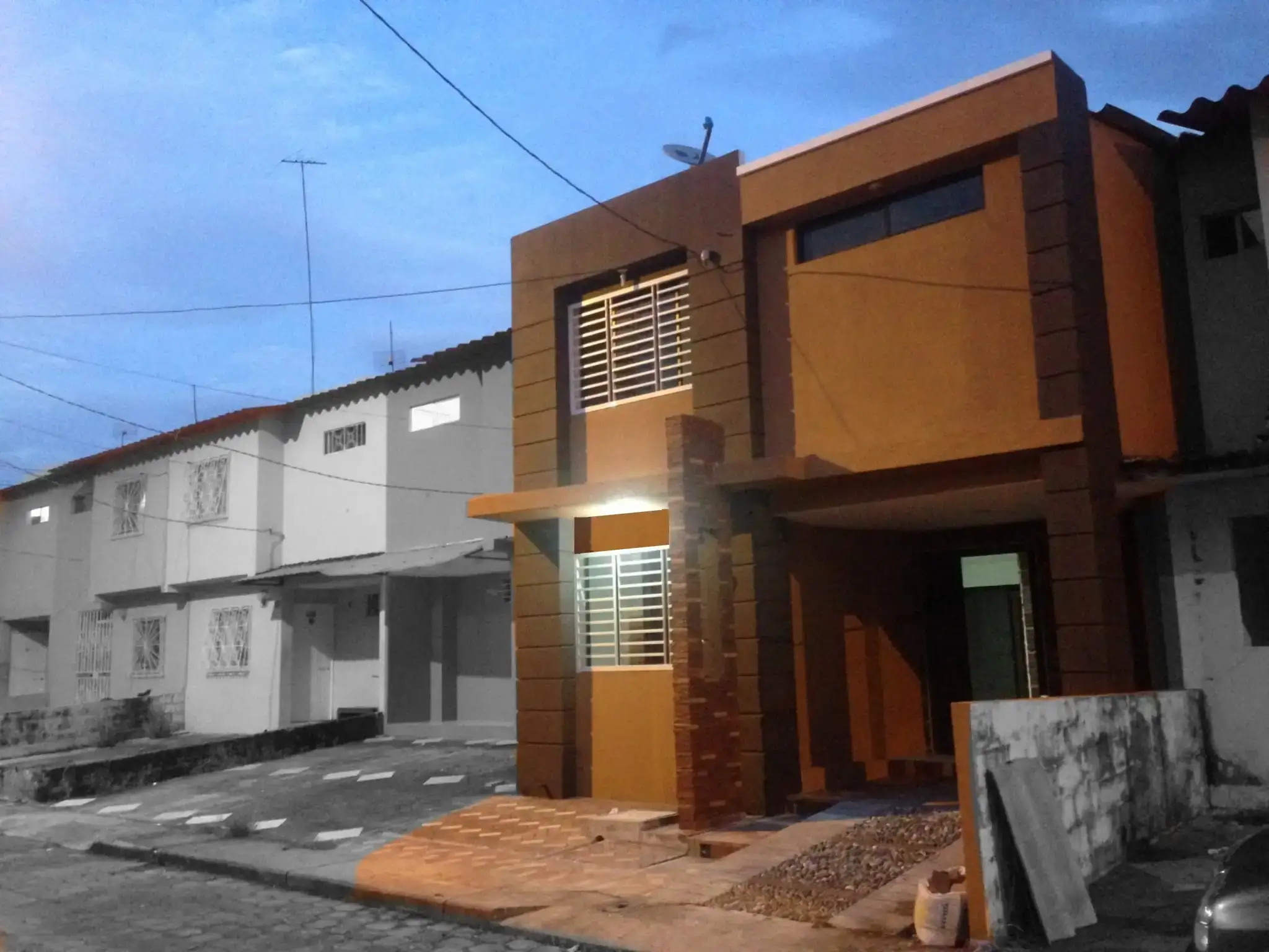 Located in the northern sector of Guayaquil, the Villa España housing development, part of the Mucho Lote municipal initiative, offers a series of compact, standardized homes designed to meet the city’s demand for accessible family housing. Within this context, my role involved reimagining one of these residences in the Valencia stage, transforming its interior layout to better suit the specific needs of its occupants. The intervention focused on creating personalized, functional spaces while maintaining full compliance with municipal regulations. On the exterior, the redesigned façade breaks subtly yet decisively from the repetitive rhythm of the surrounding units, introducing a vibrant palette of terracotta and orange tones that complement the clay cladding and bring a more expressive architectural identity to the home without disrupting the harmony of the streetscape.